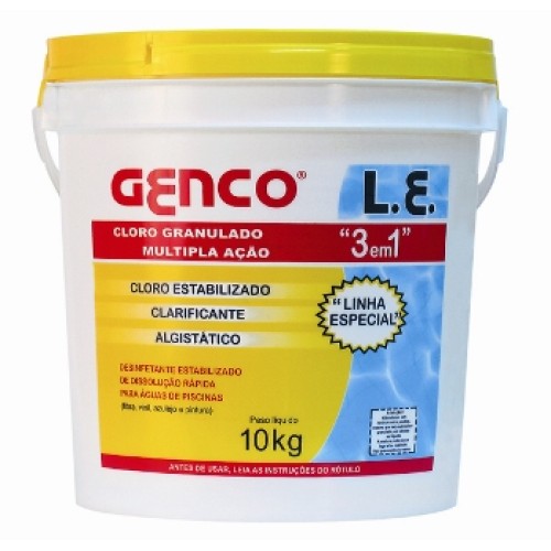 Adicionar diariamente de 3 a 4 g/m³ (3 a 4 gramas por 1000 litros de água) de GENCO L.E, espalhando-o diretamente sobre a água. Em piscinas de fibra, vinil, ou pintadas, dissolver previamente em um recipiente plástico com água da própria piscina.