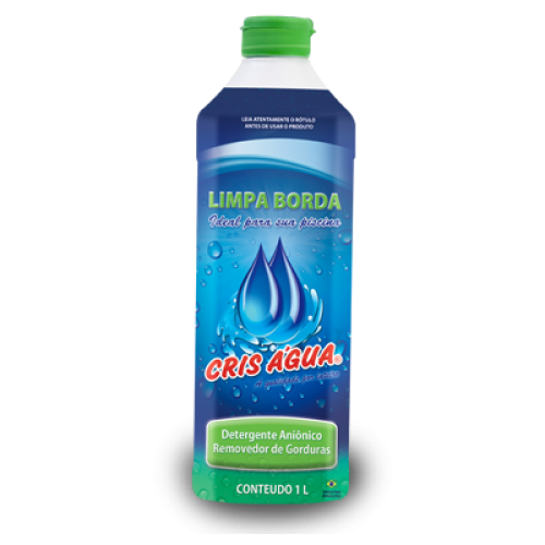 O Limpa borda Cris água é um detergente concentrado aniônico utilizado para limpeza das laterais das piscinas (azulejos, fibra, vinil, etc.), devido sua formula balanceada não altera o PH da água, removendo a gordura acumulada nas laterais das piscinas sem fazer espuma em excesso, não afetando o brilho original